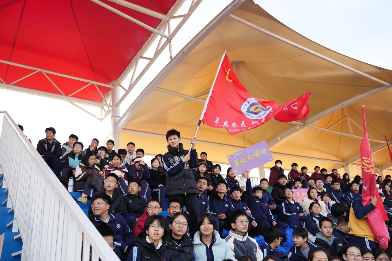 赛前热身阶段,操场看台已人头攒动、气氛热烈。济南市深泉外国语学校初一、初二学子与济南杏坛高级中学高一学子组成气势恢宏的助威方阵,校领导、女足项目负责人、队员家长代表等在主席台有序就座,共同见证这场属于青少年的足球盛宴。战鼓雷鸣,响彻全场,整齐划一的口号与挥舞的各班班旗、校旗交织成激情澎湃的画面,提前点燃了赛场氛围。当双方队员踏着昂扬的步伐入场时,全场掌声雷动,这份源自主场的热烈期盼,成为深泉女足奋勇拼搏的强大精神动力。