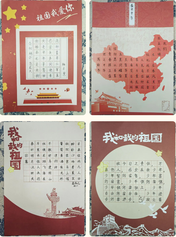 书画是美育中的人文力量,同学们以硬笔书法形式向祖国献礼,每一笔都坚定有力,每一划都饱含深情,字里行间洋溢着对伟大祖国的无限赞美与诚挚祝福。