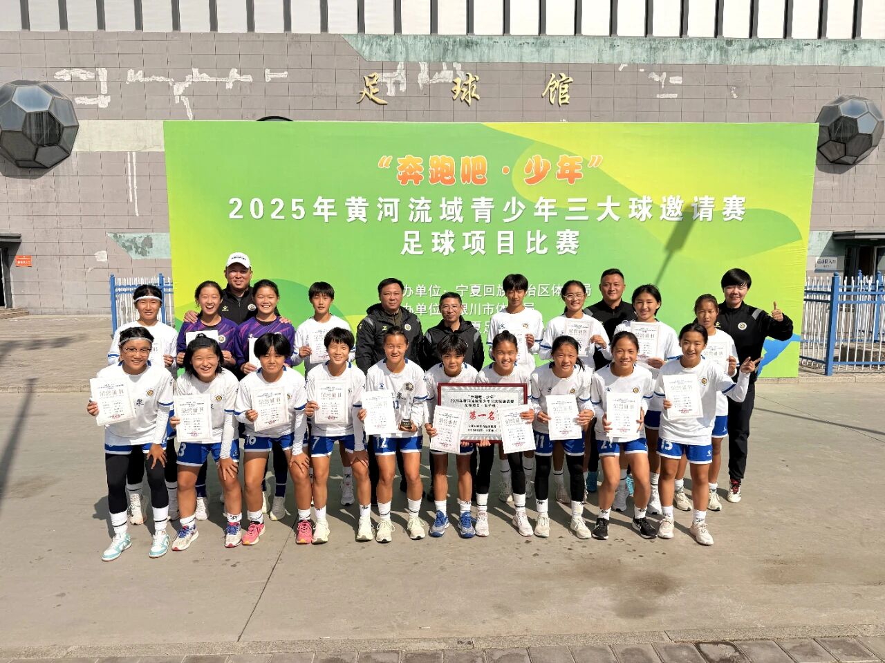 2025年10月6日,祖国华诞与中秋佳节交织的喜庆时刻,宁夏银川的足球赛场上传来振奋人心的捷报——济南市深泉外国语学校女子足球队代表山东出战2025年“奔跑吧·少年”黄河流域九省区青少年三大球邀请赛,历经多轮鏖战,最终以2:1力克东道主宁夏队,成功斩获足球项目女子组全国冠军。