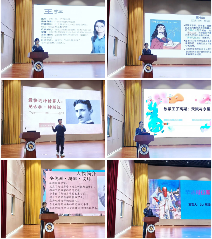 活动自启动以来,便得到了同学们的积极响应。大家利用课余时间,广泛搜集资料,精心筛选内容,认真制作PPT、撰写演讲稿。从华罗庚的勤奋与爱国情怀,到特斯拉的奇思妙想与执着追求;从高斯的少年天赋与严谨治学,到更多数学、物理学巨擘的传奇经历……同学们在准备过程中,不仅深化了对科学知识的理解,更被科学家们追求真理、坚持不懈的精神深深打动。