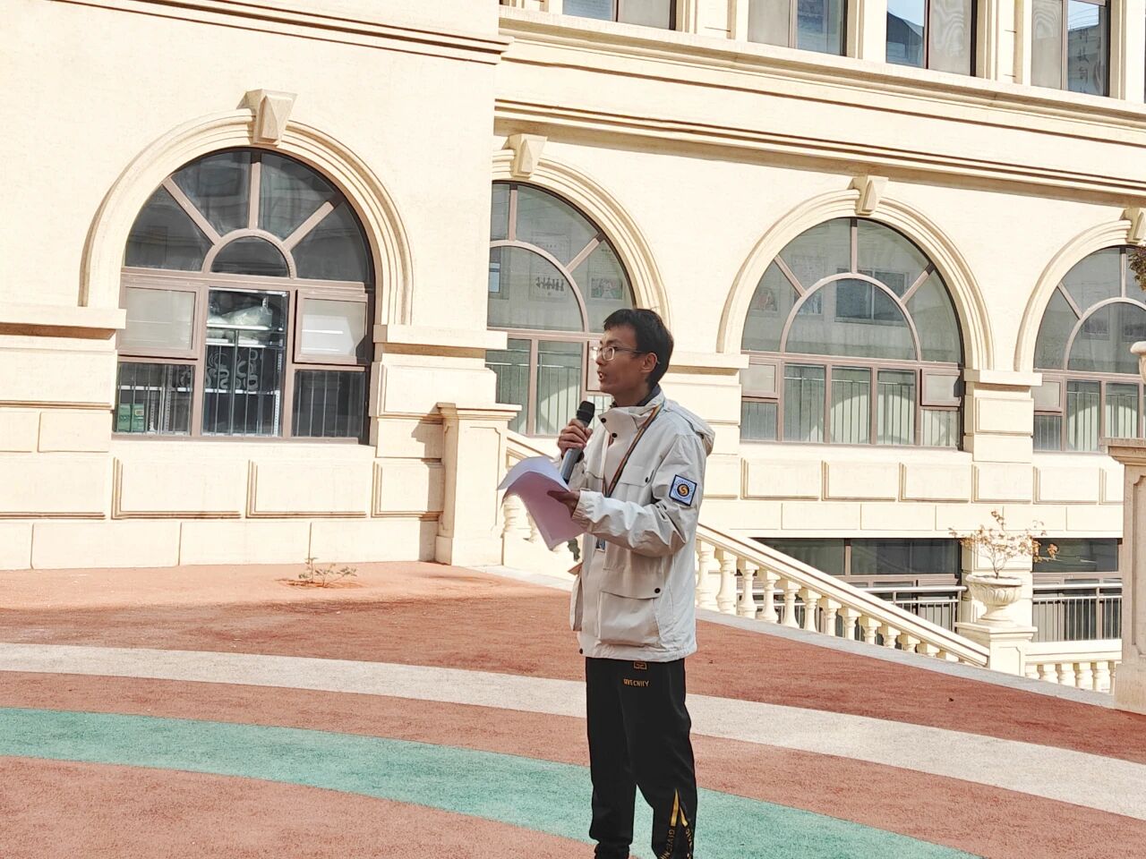 教师代表骆玉卫老师将期中考试形象的比喻为我们共同攀登的山峰,攀登这座山峰的两种核心力量是个体的奋斗与集体的共鸣。他呼吁同学们全力以赴,以自身不懈的奋斗,点亮知识的宇宙;同时以团队紧密的协作,照亮彼此的征途。