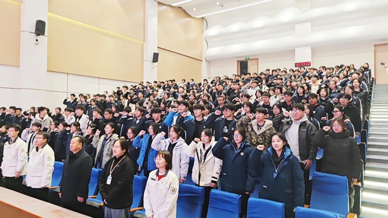 大会的高光时刻当属集体宣誓。同学们高举右拳,誓言铿锵;紧接着,《一路生花》宣传视频缓缓铺展,熟悉的旋律随之响起,全体师生起立合唱,嘹亮的歌声传递着必胜信念。