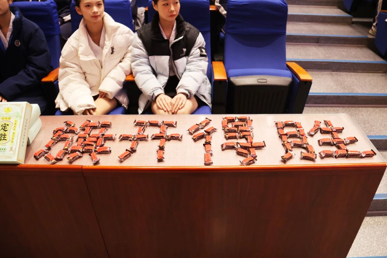 大会尾声,高三级部为艺考生送上定胜糕与摆成“旗开得胜”“艺路生花”形状的士力架,甜蜜的滋味化作奋进的力量。愿2023级艺考生带着这份期许与祝福,在艺考路上乘风破浪,终能“艺”路生花,不负韶华,抵达理想彼岸!