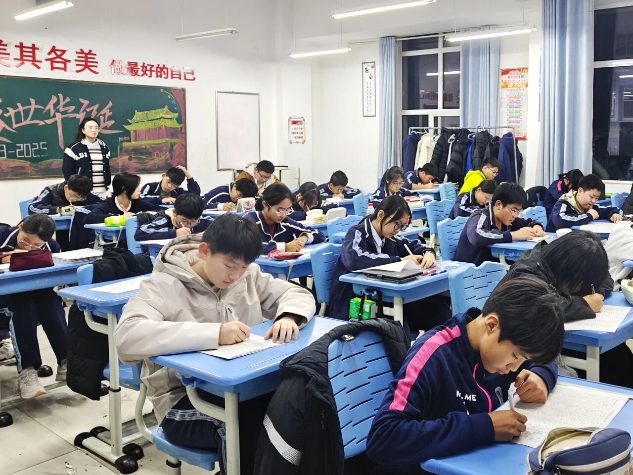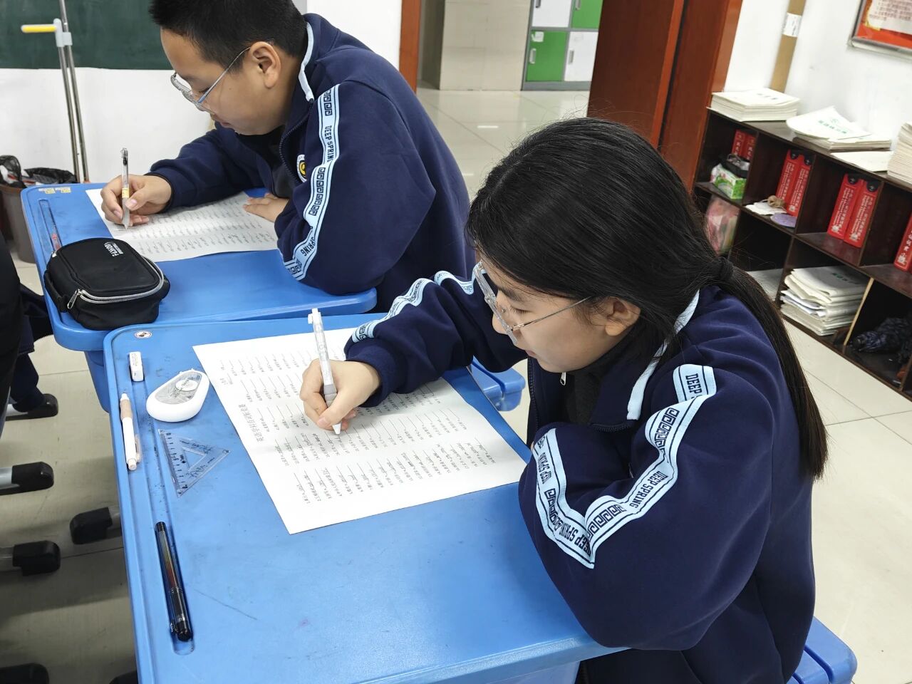 竞赛现场,秩序井然,唯有笔尖划过纸张的沙沙声清晰可闻。每一位同学都全神贯注,或凝神思索,或奋笔疾书。他们专注的眼神、沉稳的状态,构成了一道亮丽的风景线,充分展现了同学们笃学不倦、积极向上的精神风貌。