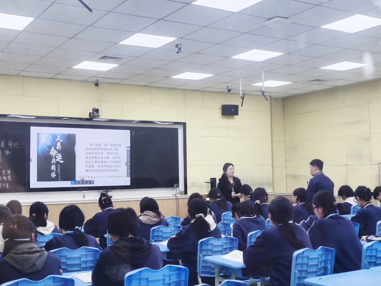 活动启动以来,高二级部各教研组凝心聚力,掀起“集体备课、互助磨课”的热潮。政治组老师率先开展集体听课活动,聚焦陈然老师的《构建人类命运共同体》,从教学设计、课堂互动到育人理念落地,逐环节打磨优化,为后续课程录制奠定坚实基础。