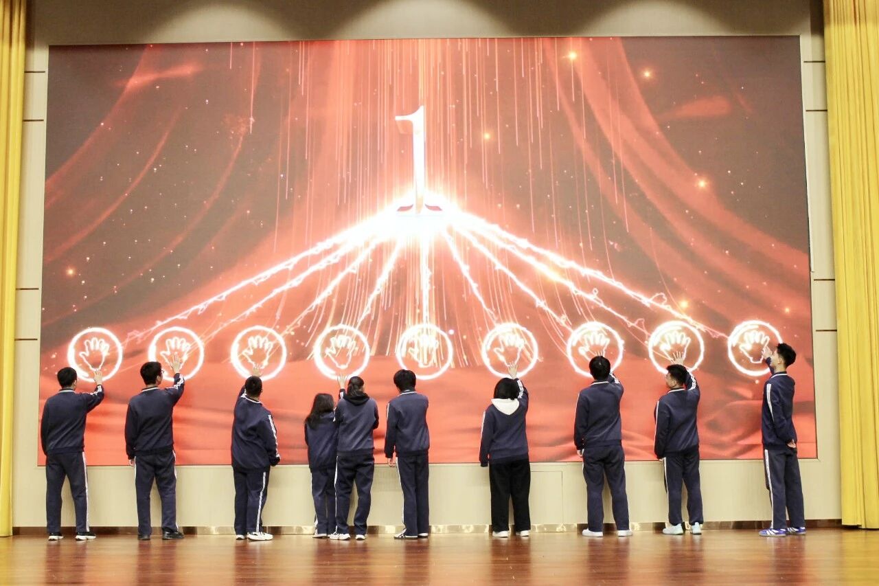 动员环节结束后,迎来了庄严而热烈的“合格考冲刺暨冬学热潮启动仪式”。各班班长代表班级按动电子手印,共同点亮启动屏幕。随后,各班高举励志横幅,以青春的名义高声宣誓。
