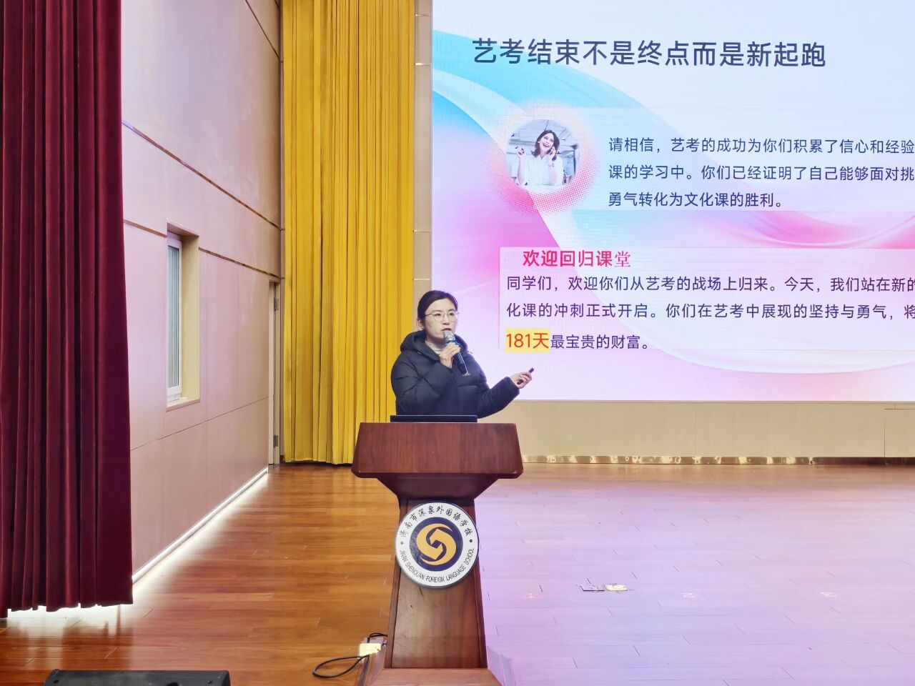 艺考落幕,逐梦不止!12月8日,济南市深泉外国语学校高三艺术生齐聚博学楼报告厅,开启艺考归来后的高三复习开学第一课。本次课程由高三级部艺术学部教学主任赵伟、学管主任刘建樟联袂主讲,为学子们注入冲刺文化课的满满动力。