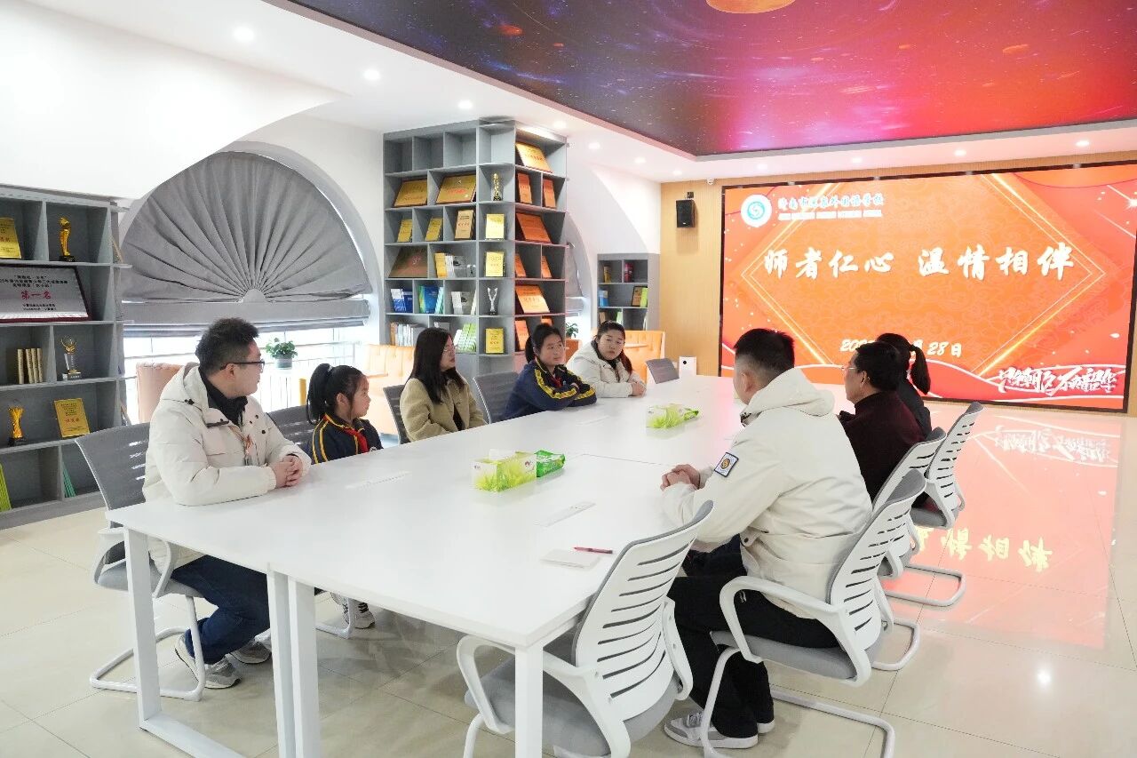 ▲ 李玥晓、李玥佳母亲与学校领导、学部老师座谈交流