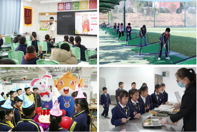 小学部实行“小班精英制”,1:4优越师生比确保每位学生都能得到充分的关注与个性化指导。校园宛如多元成长乐园:高尔夫球场锻炼体魄与毅力,科创中心激发探索精神,智能书法教室浸润传统文化。同时,专业心理教师提供常态化辅导,生活老师24小时温情陪伴,从情绪疏导到习惯培养,给予学生全方位的支持与归属感。