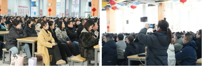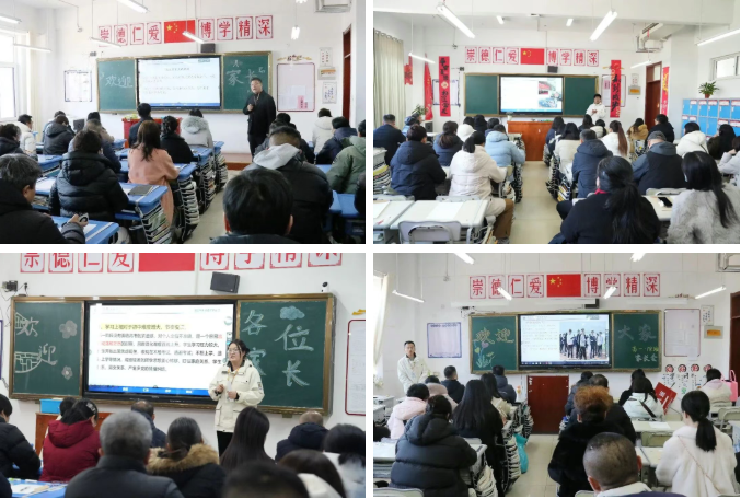 会议召开前,大屏幕上循环播放《时光印记,见证成长》短片,内容涵盖德育管理、教育教学、生活保障三大维度,让家长全方位见证孩子的阶段性成长成果。