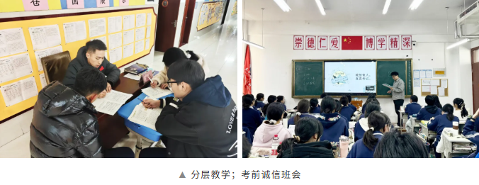 备考期间,级部提前统筹、科学规划,精准把控复习节奏;各学科组深研考纲考点,精准备课、高效授课,全力提升课堂效能。教师团队坚守育人初心,针对学情差异实施分层教学,开设补弱冲刺班,为每一位学生补齐短板、保驾护航。