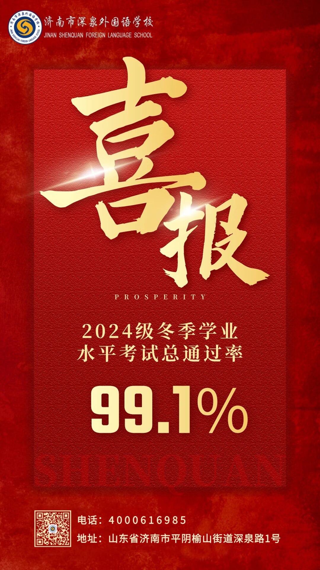 近日,山东省2025年冬季普通高中学业水平合格考试成绩揭晓,济南市深泉外国语学校2024级学子再创佳绩,语文、数学、外语、物理、政治五科总合格率达99.1%!以优异成绩彰显育人成效,生动诠释了学校“美其各美,做最好的自己”的育人理念。