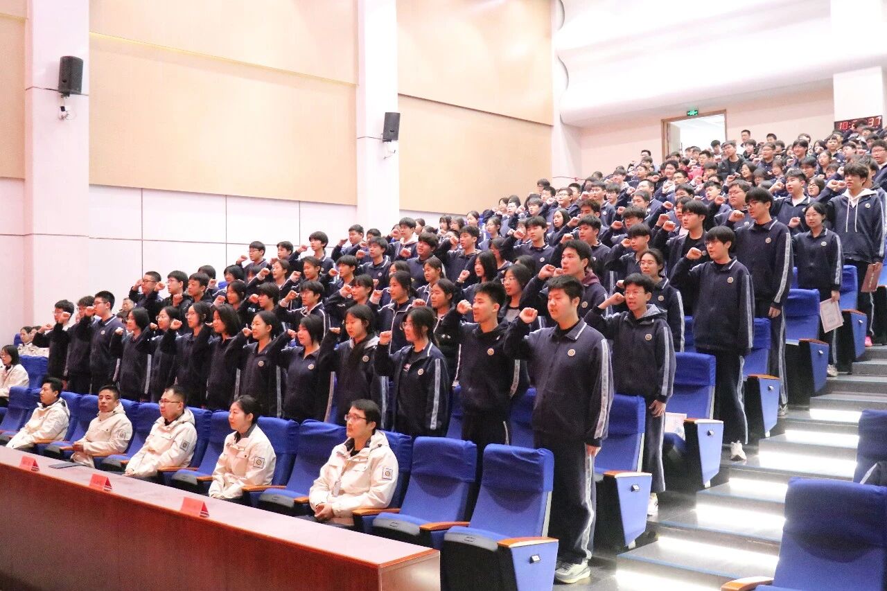 宣誓环节,全体初三教师率先庄严承诺:恪尽职守,暖心陪伴,为学生保驾护航。紧接着,全体学生高举右拳,庄严宣誓,誓言铿锵有力,喊出了百日冲刺的坚定信念和决胜中考的壮志豪情。