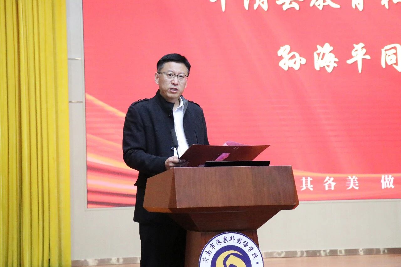 平阴县教育和体育局局长孙海平致辞,他表示,近年来平阴县教体局始终紧跟济南体教融合与校园足球发展步伐,将校园足球作为提升青少年综合素质、培育体育精神的重要抓手,持续推动足球运动在校园的普及与提升。济南市深泉外国语学校作为全国青少年校园足球特色学校,探索出独具特色的发展路径,将足球教育融入教学与校园文化,构建起课程普及、活动融入、赛训提升的一体化模式,并兼顾文化课学习与专业训练。深泉女足屡创佳绩,斩获黄河流域“三大球”挑战赛全国冠军等荣誉,成为平阴校园女足标杆。此次签约授牌,既是对学校工作的认可,更是平阴体教融合发展的重要里程碑,平阴县教体局将全力做好政策保障与资源协调,推动体教融合与校园足球工作再上新台阶。