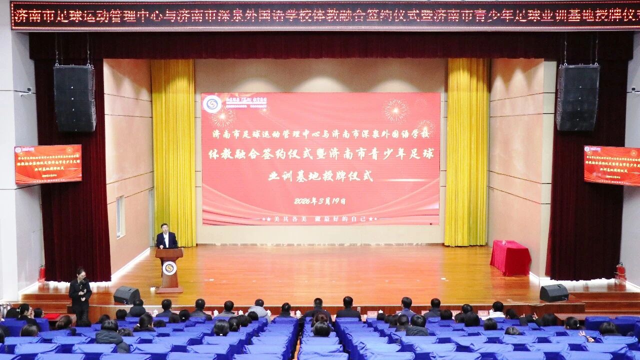 2026年省运会开局之年,济南市足球运动管理中心与济南市深泉外国语学校进一步深化战略协作,正式签署体教融合合作协议,并为济南市青少年足球业训基地揭牌,实现从项目合作向全面共建的跨越。