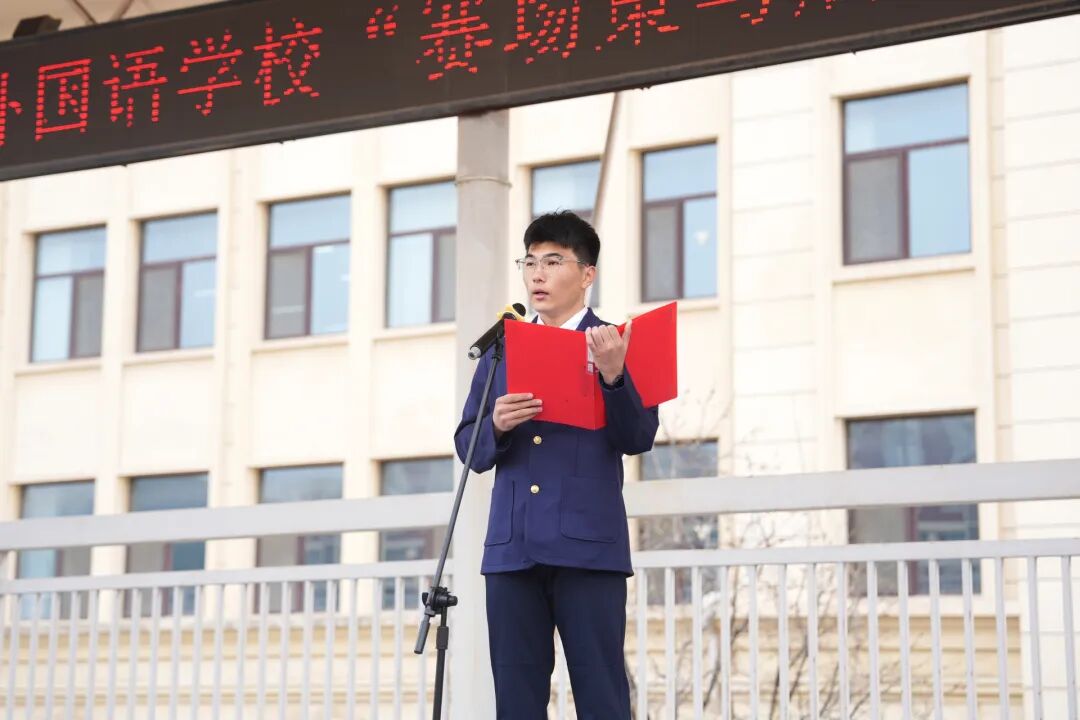 学生代表高一8班王宇杭发言,他代表全体同学表达了对体育节的热切期盼,衷心感谢学校为体育生搭建的优质训练平台和多元升学路径。他倡议全体同学以体育精神磨砺意志,将赛场拼搏的劲头融入日常学习生活;同时结合清明节临近的契机,勉励大家缅怀先烈、珍惜当下,以团结奋进的姿态投身体育节,严格秉持“安全第一、友谊第二”的原则,赛出风格、赛出水平。