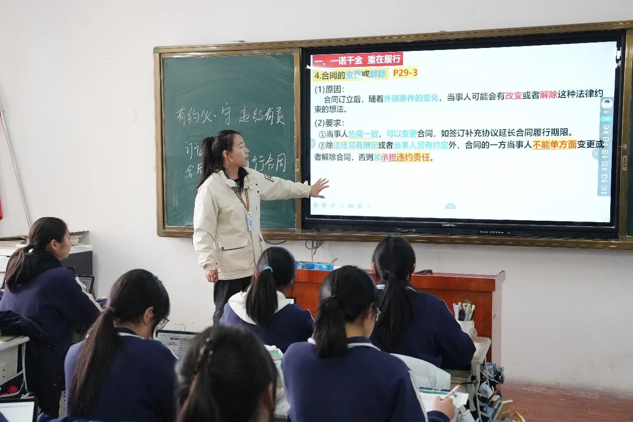 我们始终坚持“以生为本”,不机械套用“361”模式,而是结合政治学科特点和课程难度灵活调整。对于重难点突出、难度较大的课程,我们贯通“361”各环节,让学生真正成为课堂的主人;对于目前学习的法律章节等相对基础的课程,则以学生自主学习为主、教师点拨为辅,充分调动学生的主动性,帮助学生掌握有效的学习方法。日常授课中,我们以学案为依托,引导学生提前自主预习,梳理课本基础知识点,简单内容点到即止;对于抽象、难懂的重难点,我们精心设置情景案例,组织学生小组讨论、互学研学,让学生在交流碰撞中深化理解,再由教师精准点拨、总结升华。课堂最后,我们会设置当堂检测,基础题覆盖全体学生,确保人人掌握核心知识;实验班学生则额外增加高考类能力提升题,提前衔接高考考点,既夯实基础,又培养学生的学科素养。这些举措,让“361生本智慧课堂”落地生根,让学生的学习真实发生。