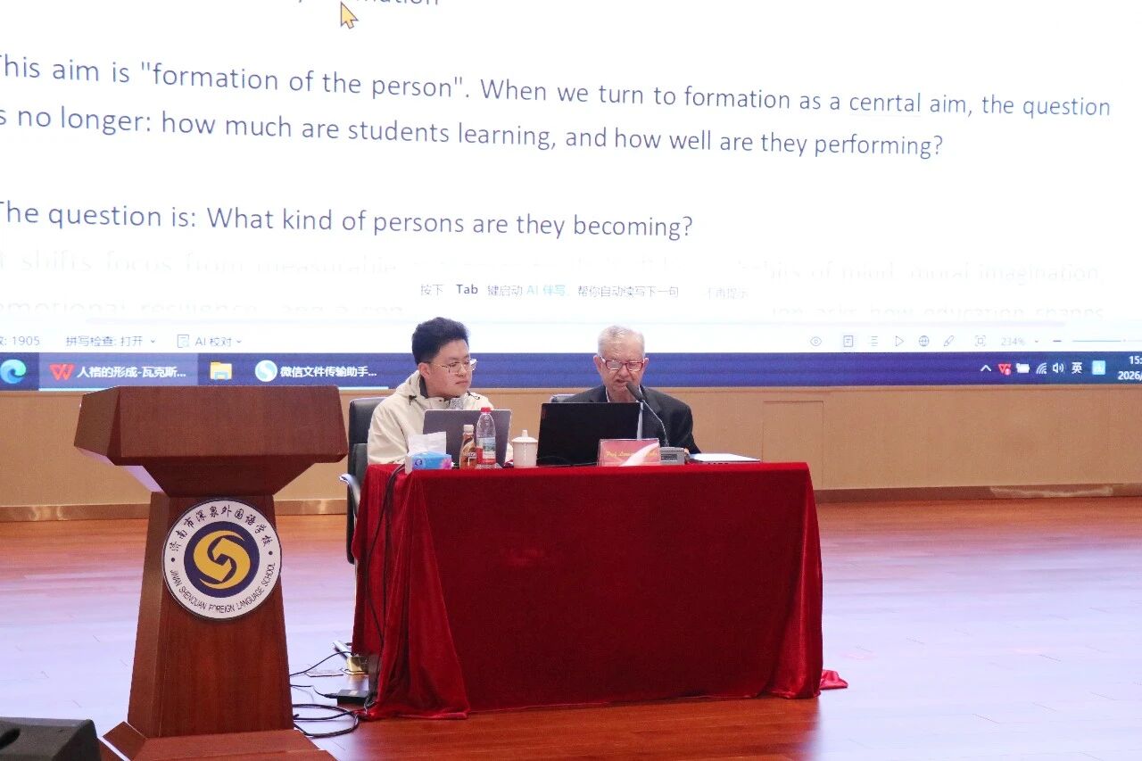 下午,两位教授带来专题讲座,引发师生广泛共鸣。瓦克斯教授以“人格养成——高中教育的目的”为题,指出教育应聚焦人格培育,借助多元形式培育有思想、善表达的独立个体,强调AI时代更需培养具备反思与协作能力的思考者,深化了师生对教育本质的认知。